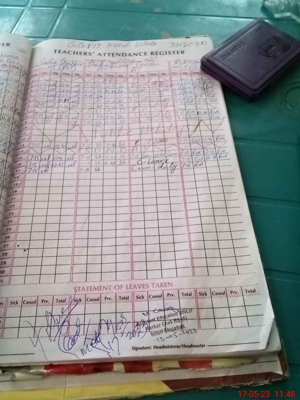 | 36**** | Sa**** Si**** | ESE | Contract | 0 | 0 | 0 | 0 | 0 | 0 | 0 | 0 | 0 | Exam Duty |