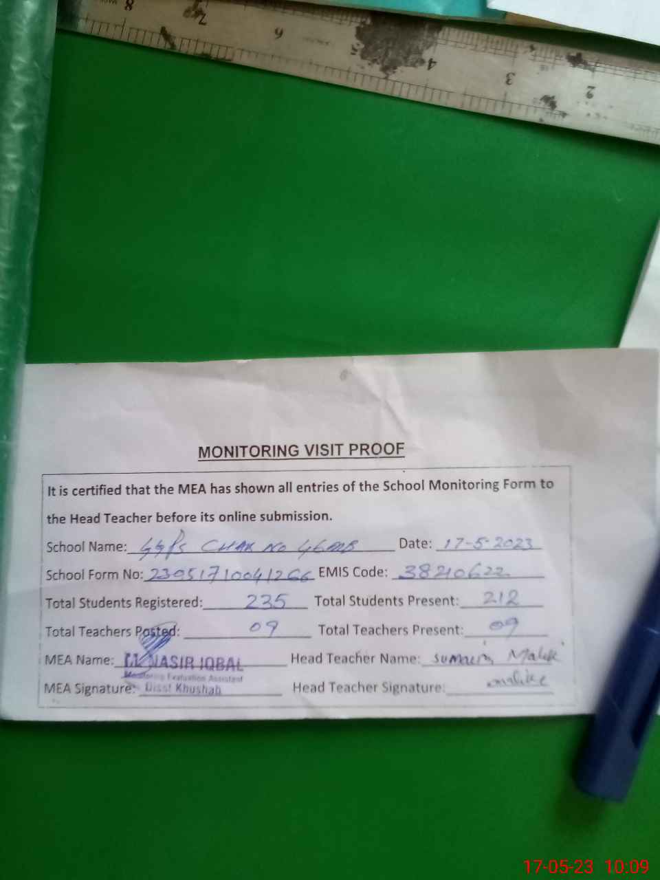 | EMIS Code: 38210622 | Name of School: GGPS CHAK NO 46 MB | |||