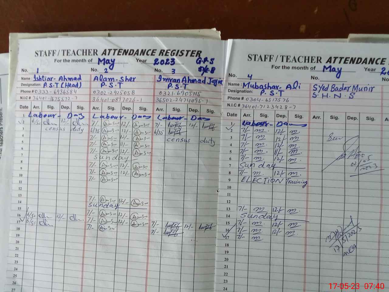 | Name: IS**** AH**** Designation: (School Headmaster's/Headmistress's) PST Phone/Cell Number: 03**** |