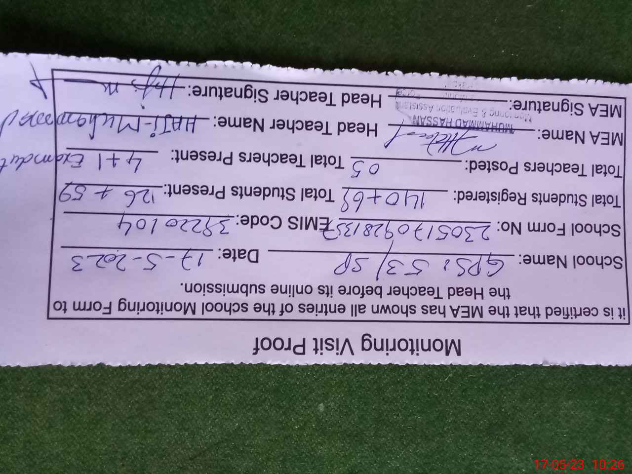 | EMIS Code: 39220104 | Name of School: GPS 53 SP | |||