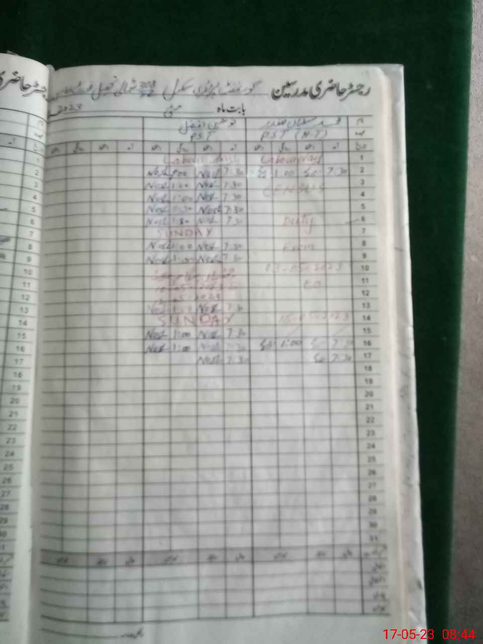 | CNIC | Full Name | Designation | R/C | Absence During Last Calender Month |