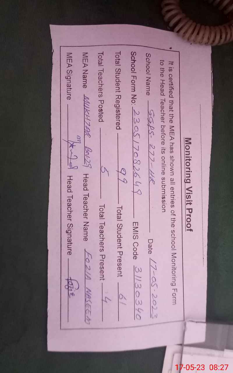 | EMIS Code: 31130340 | Name of School: GGPS CHAK NO 277 HR (E) | |||