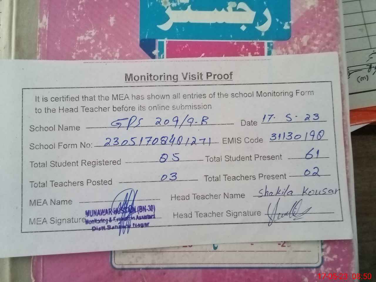 | EMIS Code: 31130198 | Name of School: GPS CHAK 209/9-R WEST | |||