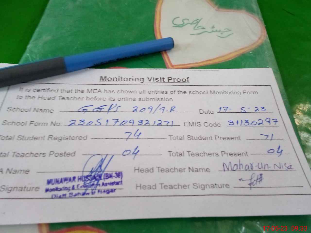 | EMIS Code: 31130297 | Name of School: GGPS CHAK NO 209/R WEST | |||