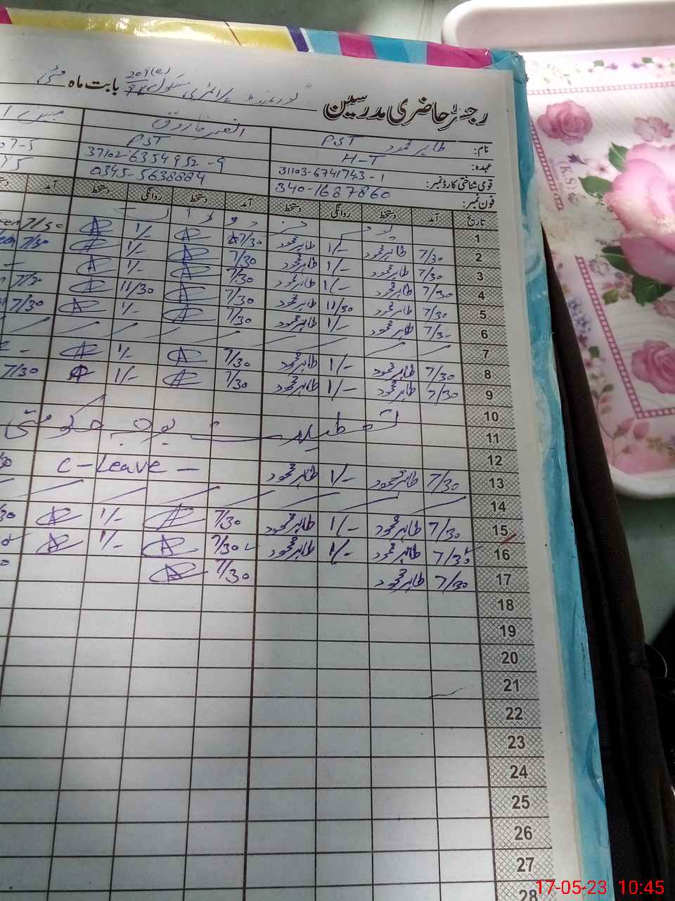 | Name: An**** Fa**** Designation: (School Headmaster's/Headmistress's) PTC Phone/Cell Number: 03**** |