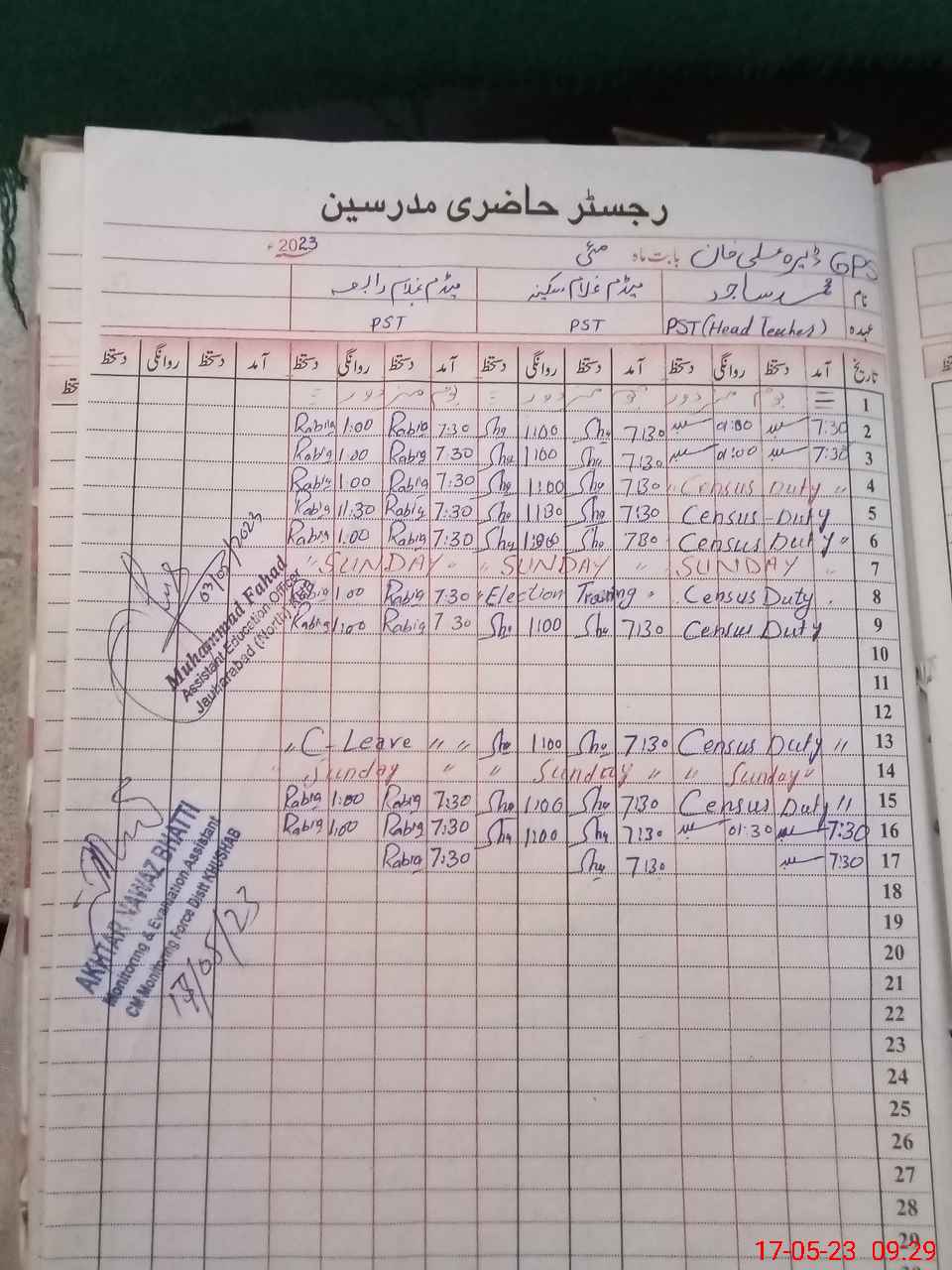 | Name: Mu**** Sa**** Designation: (School Headmaster's/Headmistress's) PST Phone/Cell Number: 03**** |