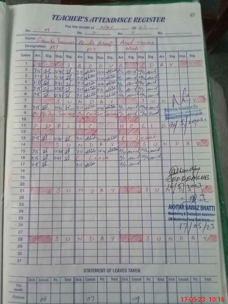 | 38**** | Na**** Ta**** | ESE(Arts) | Temporary | 0 | 0 | 0 | 0 | 0 | 0 | 0 | 0 | 0 | Exam Duty |