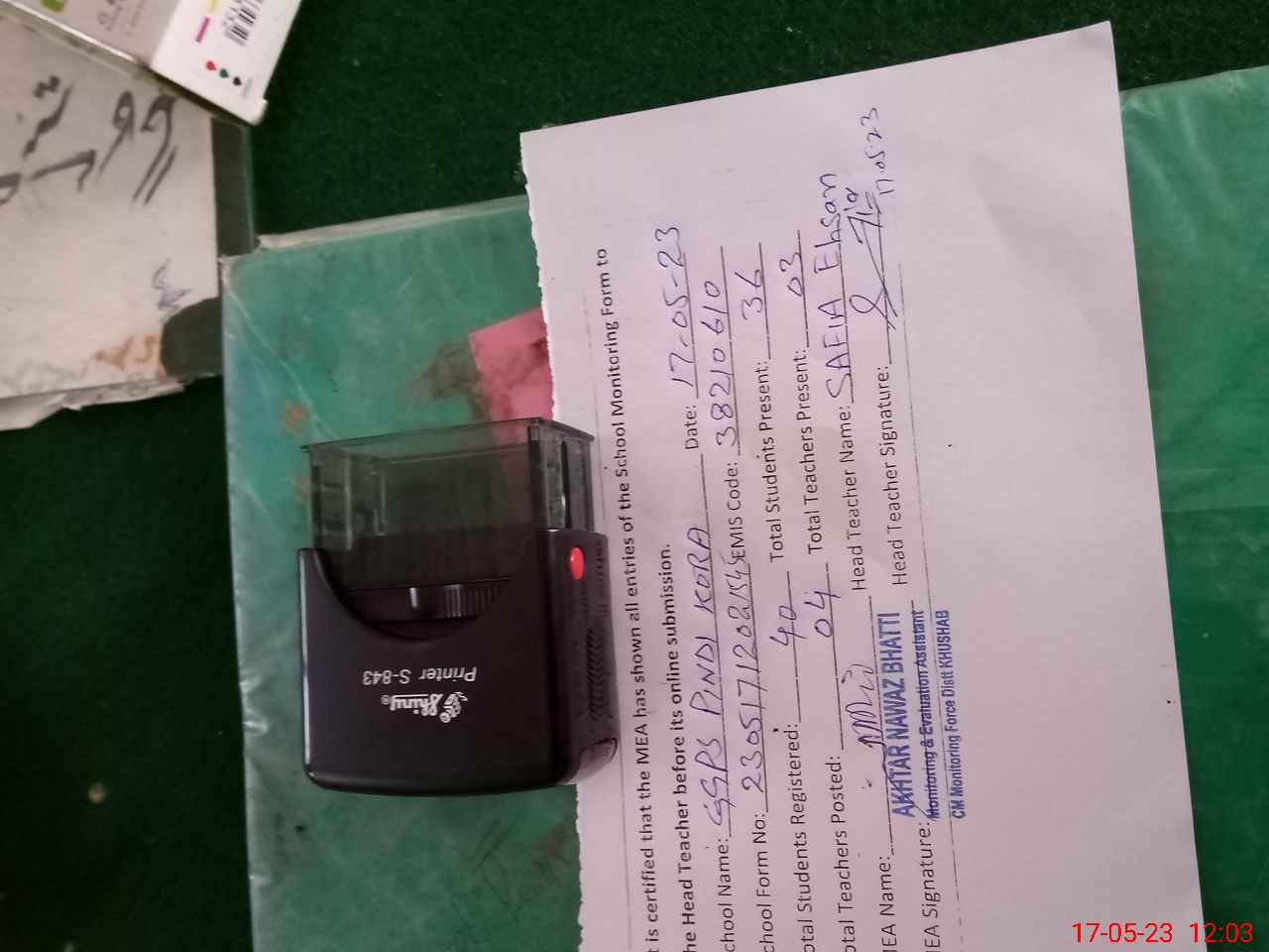 | Name: SA**** EH**** Designation: (School Headmaster's/Headmistress's) PST Phone/Cell Number: 03**** |