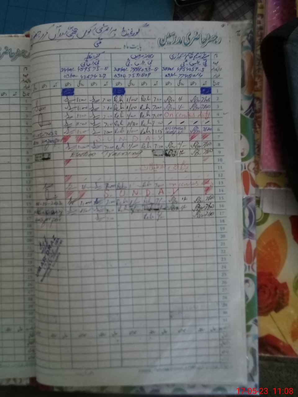| CNIC | Full Name | Designation | R/C | Absence During Last Calender Month |