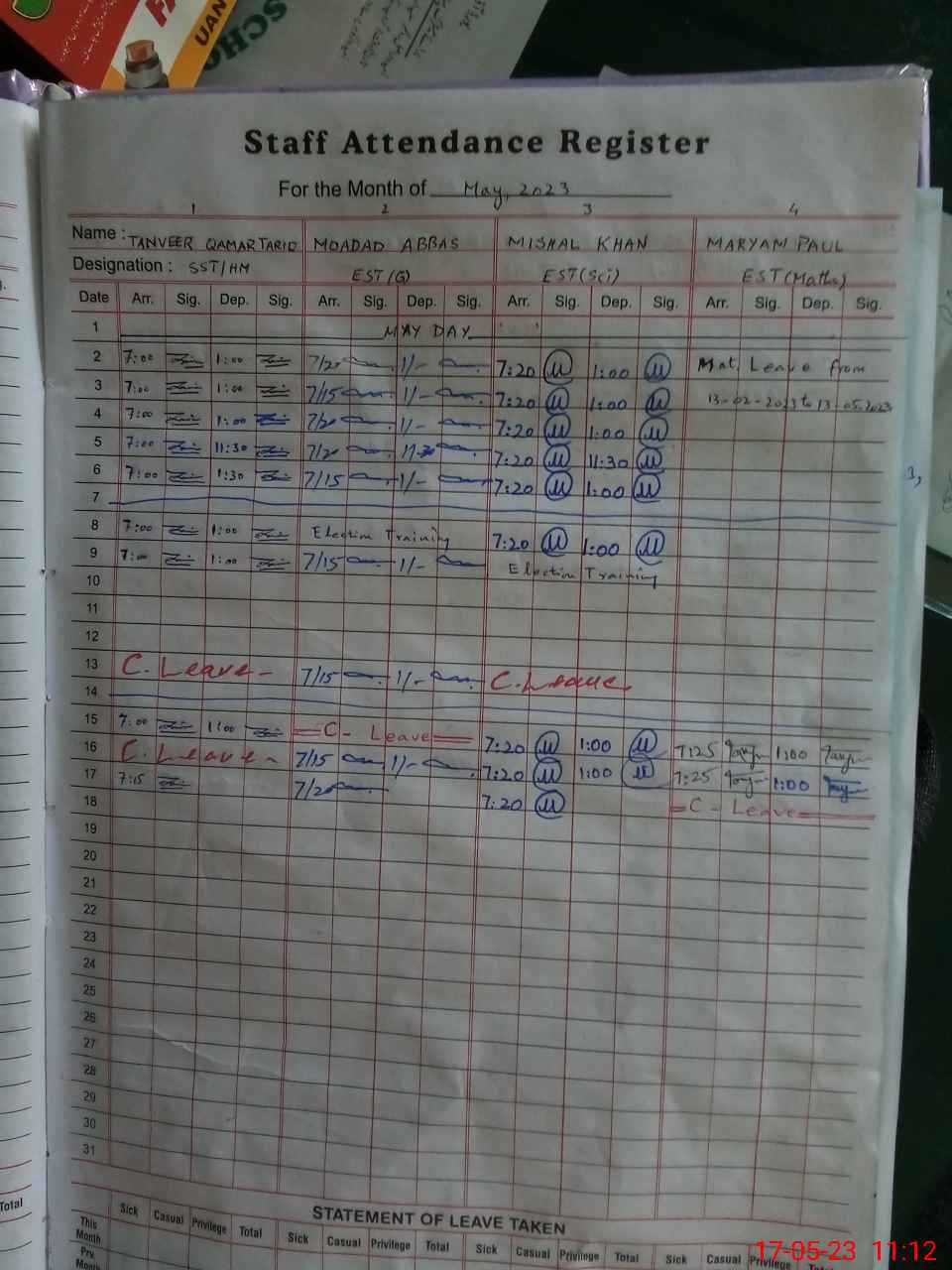 | 37**** | Za**** Ah**** | PST | Regular | 0 | 0 | 0 | 0 | 0 | 0 | 0 | 0 | 0 | Exam Duty |
