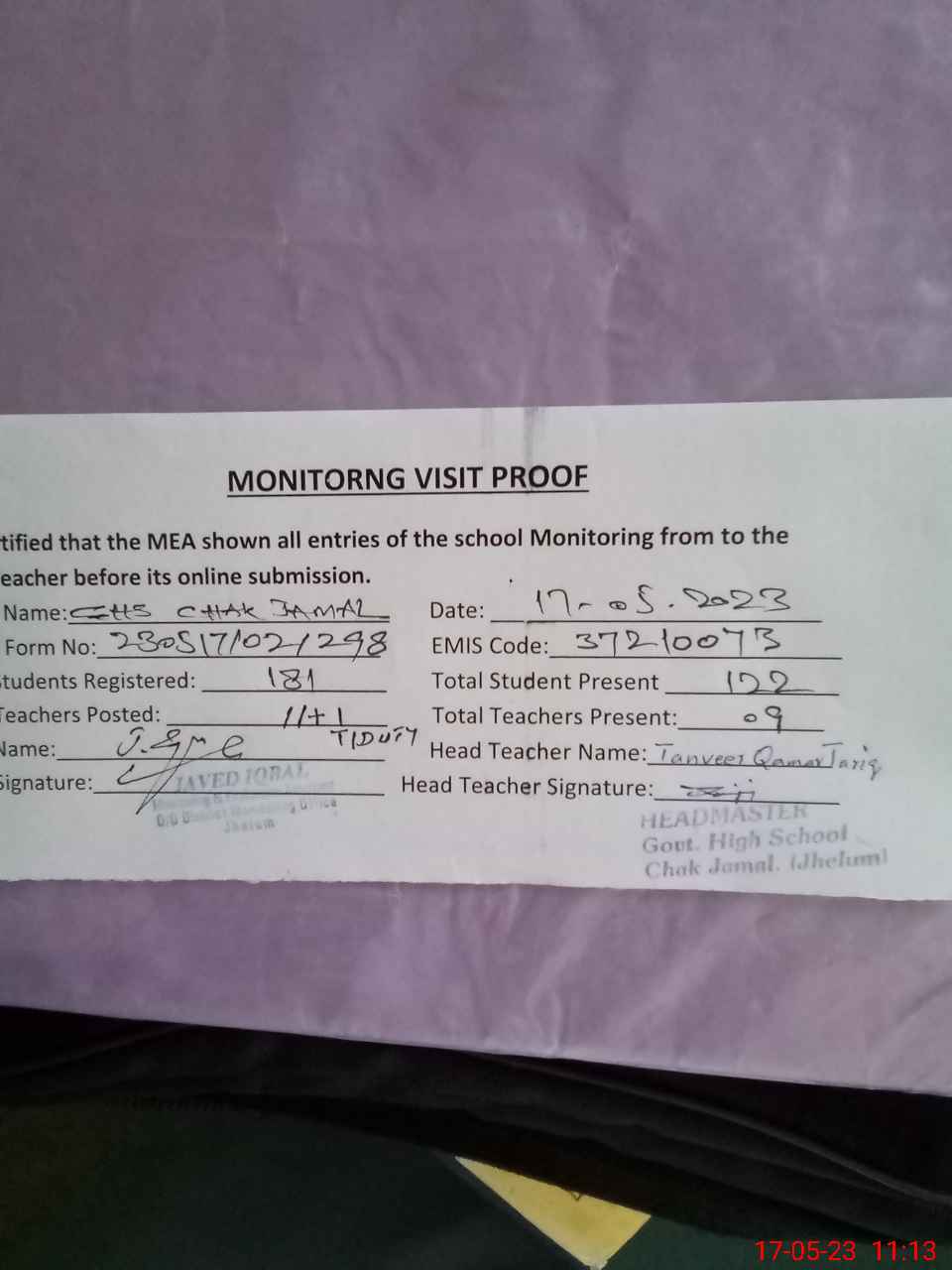 | EMIS Code: 37210073 | Name of School: GHS CHAK JAMAL | |||