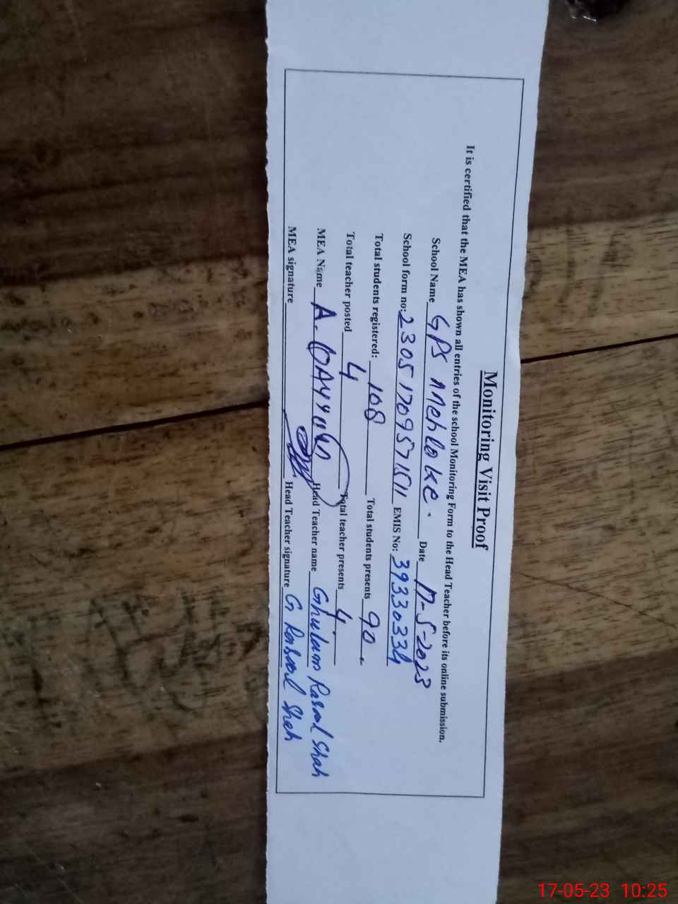 | EMIS Code: 39330334 | Name of School: GPS MEHLO KEY | |||