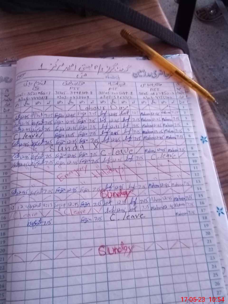 | Leave | Duty | Absent | Maternity | Medical | Ex- Pak |