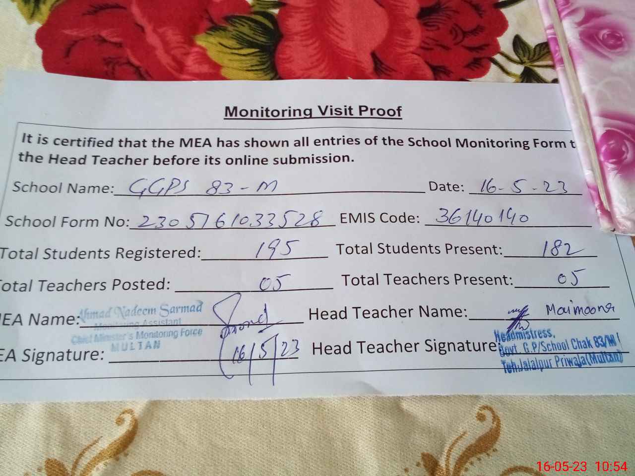 | EMIS Code: 36140140 | Name of School: GGPS CHAK NO. 83/M | |||