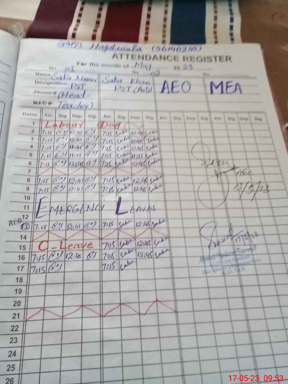 | Name of AEO: | AEO Contact No.: | MEA Phone#: 03**** | ||