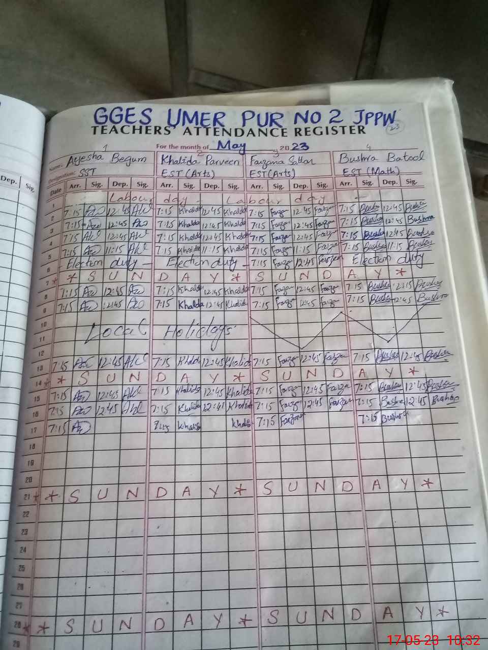 | 36**** | Ra**** Ba**** | PST | Regular | 0 | 0 | 0 | 0 | 0 | 0 | 0 | 0 | 0 | Exam Duty |