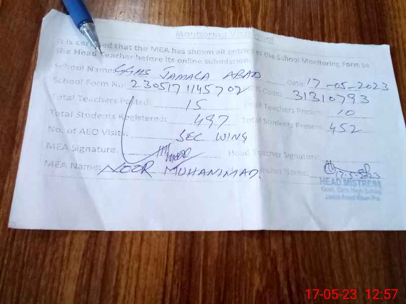 | EMIS Code: 31310793 | Name of School: GGHS JAMAL ABAD | |||