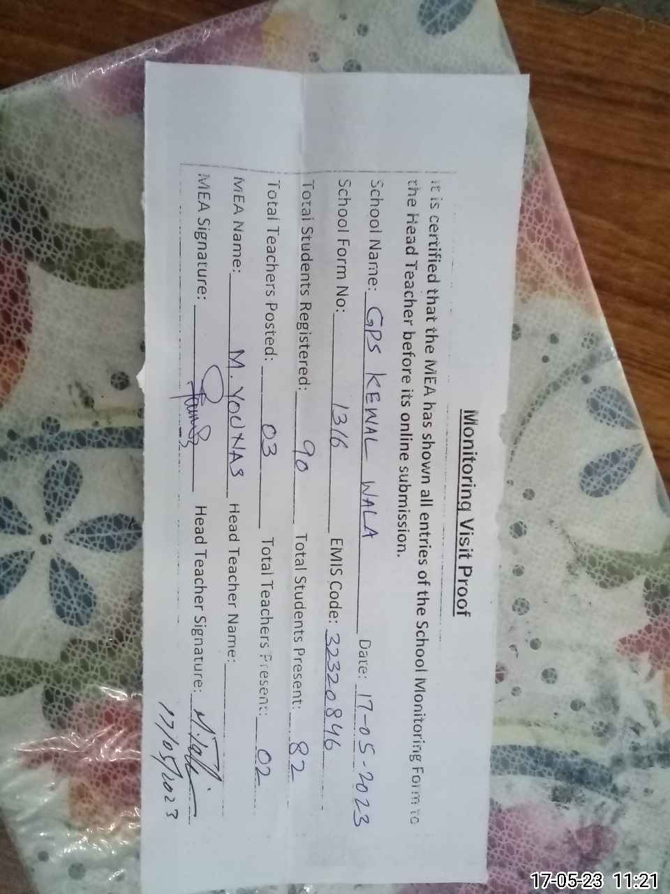 | EMIS Code: 32320846 | Name of School: GPS KEWAL WALA | |||