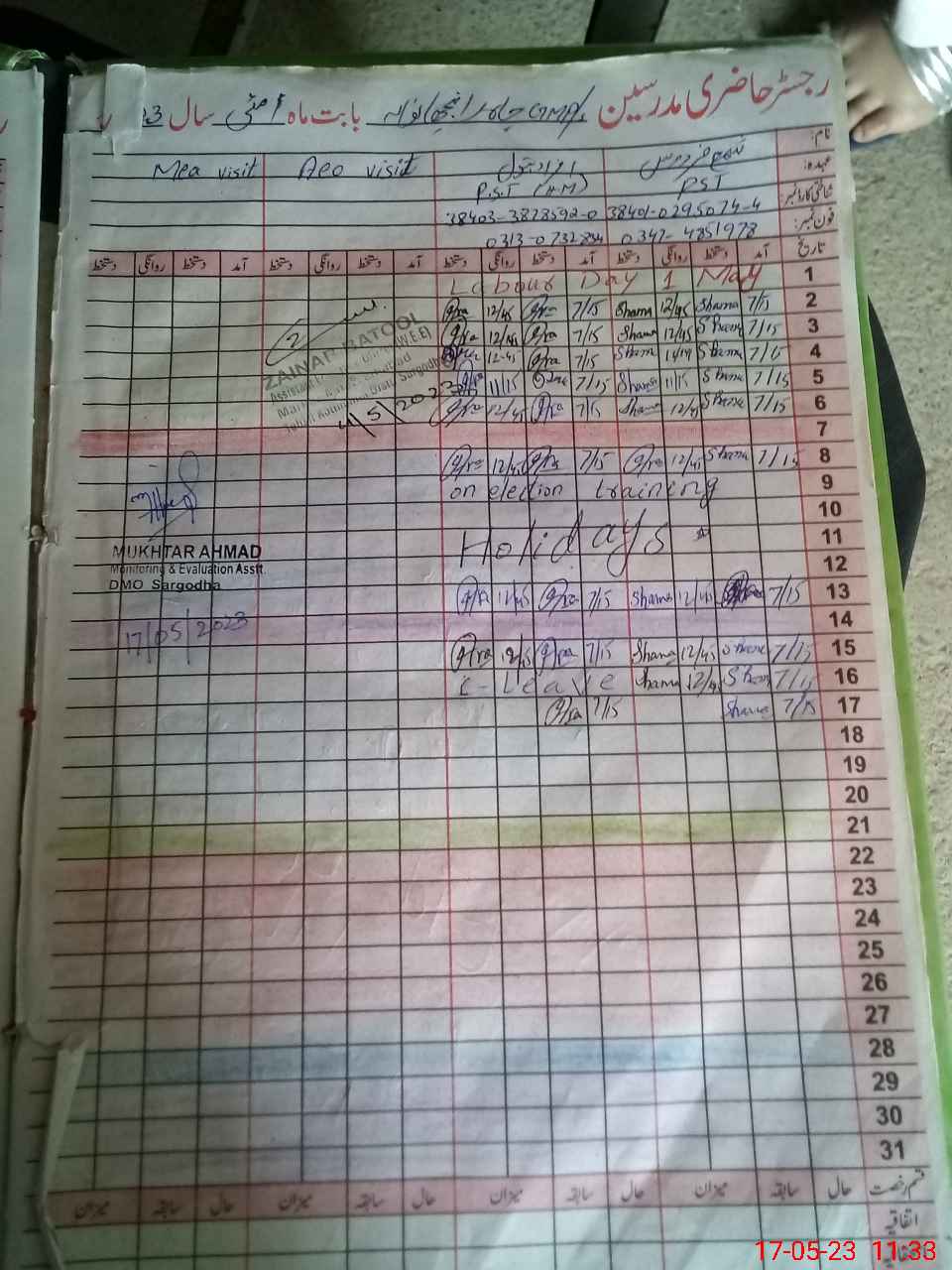 | Name: IF**** BA**** Designation: (School Headmaster's/Headmistress's) PST Phone/Cell Number: 03**** |