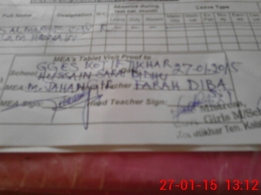 | Attendance Register | Head Teacher | MEA with School | Visit Proof |