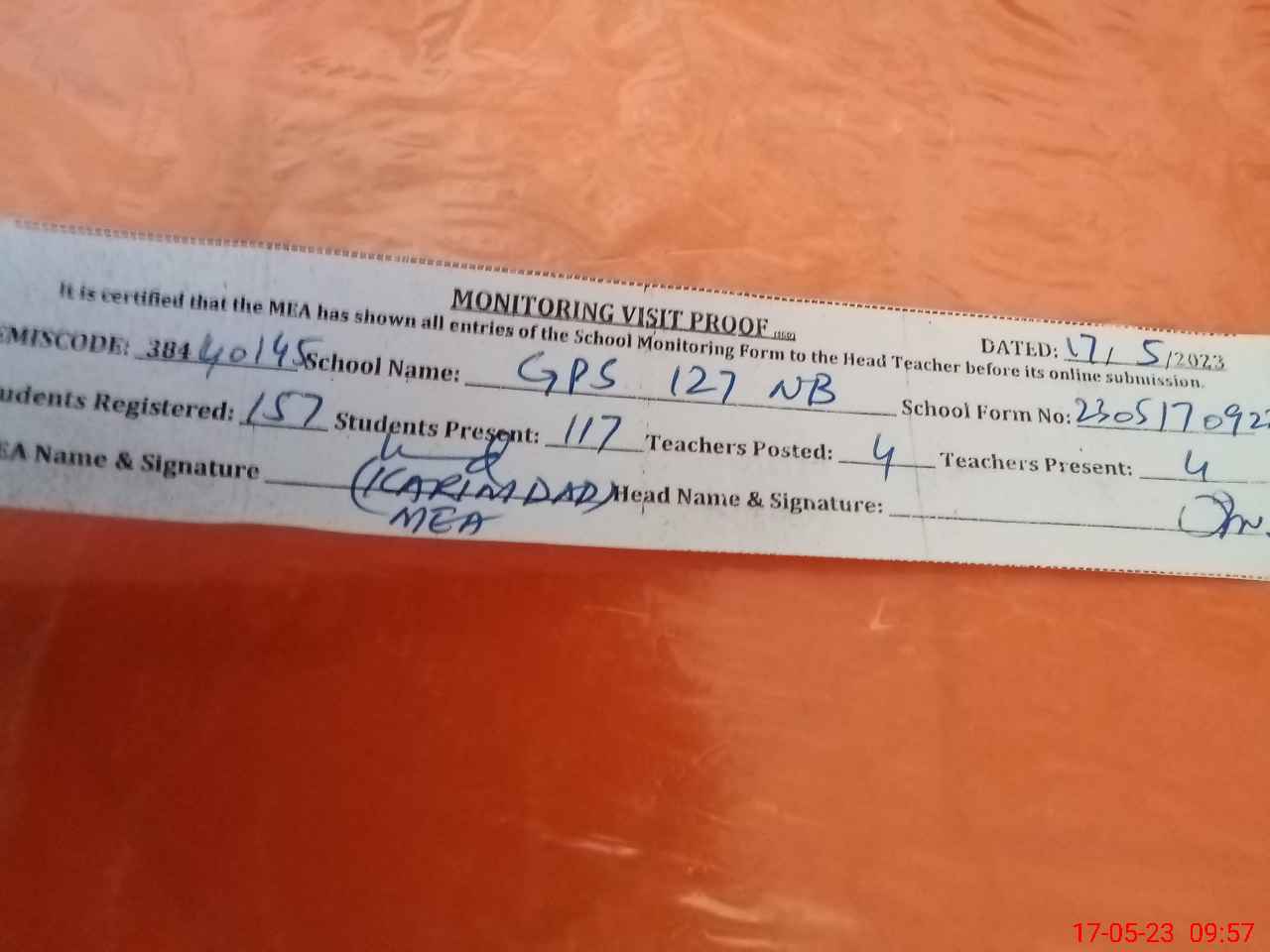 | EMIS Code: 38440145 | Name of School: GPS CHAK NO.127 NB | |||