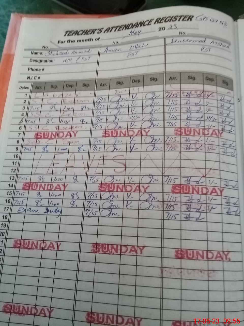 | 38**** | Sh**** Ah**** | PST | Regular | 0 | 0 | 0 | 0 | 0 | 0 | 0 | 0 | 0 | Exam Duty |