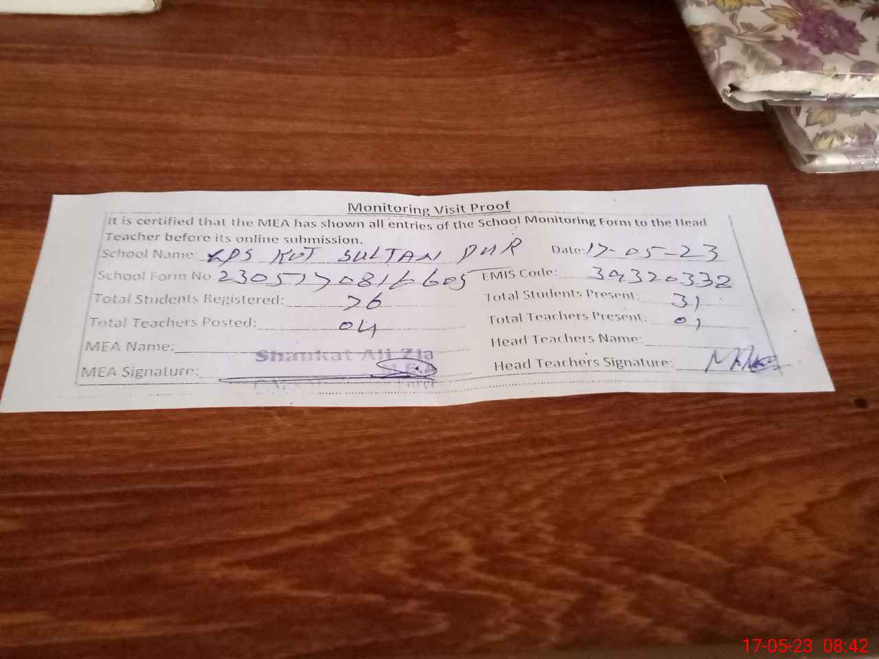 | EMIS Code: 39320338 | Name of School: GPS KOT SULTAN PUR | |||