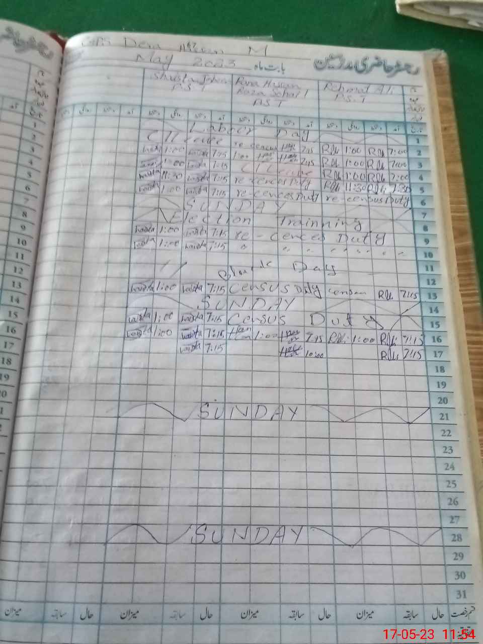 | CNIC | Full Name | Designation | R/C | Absence During Last Calender Month |