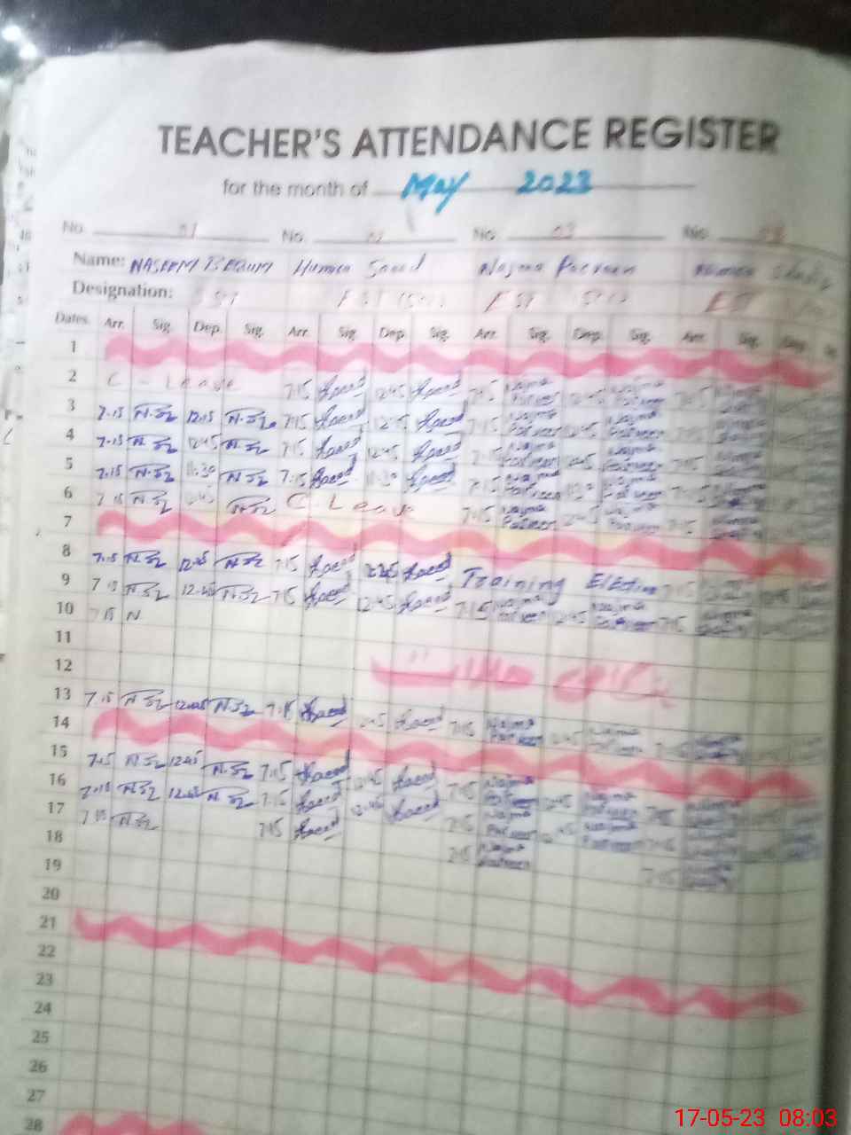 | Monitoring Date: 17-05-2023 | Start Time: 17-05-2023 08:01 AM | End Time: 17-05-2023 08:40 AM | Name of MEA: MU**** AK**** TA**** | |