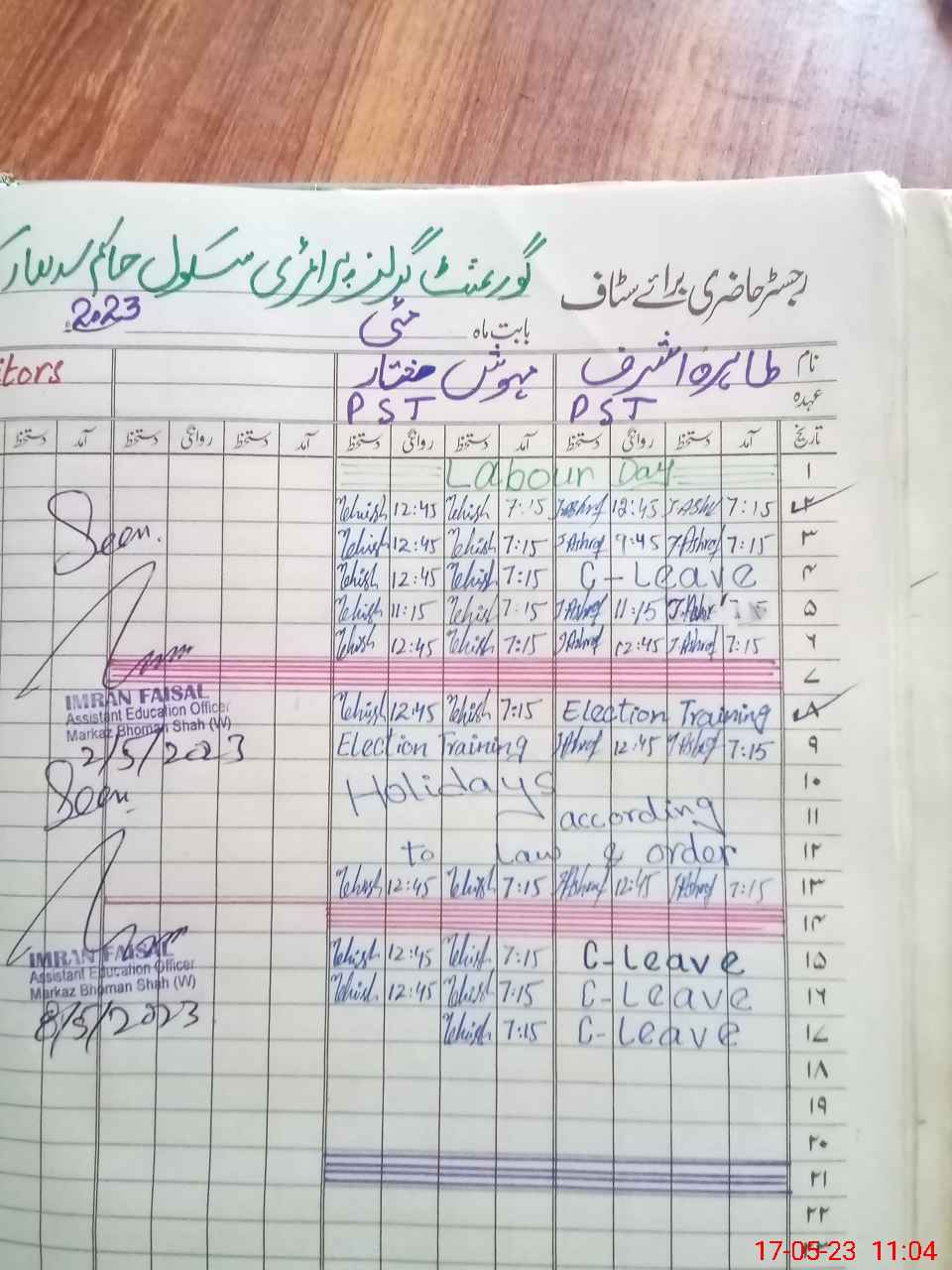 | CNIC | Full Name | Designation | R/C | Absence During Last Calender Month |
