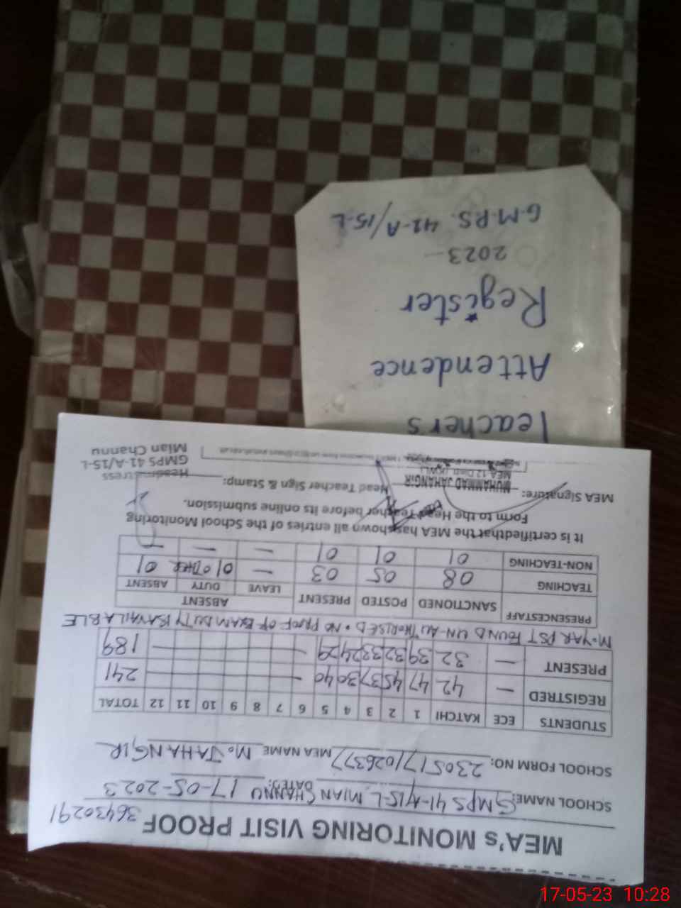 | EMIS Code: 36430291 | Name of School: GMPS 41-A/15-L, MIAN CHANNU | |||