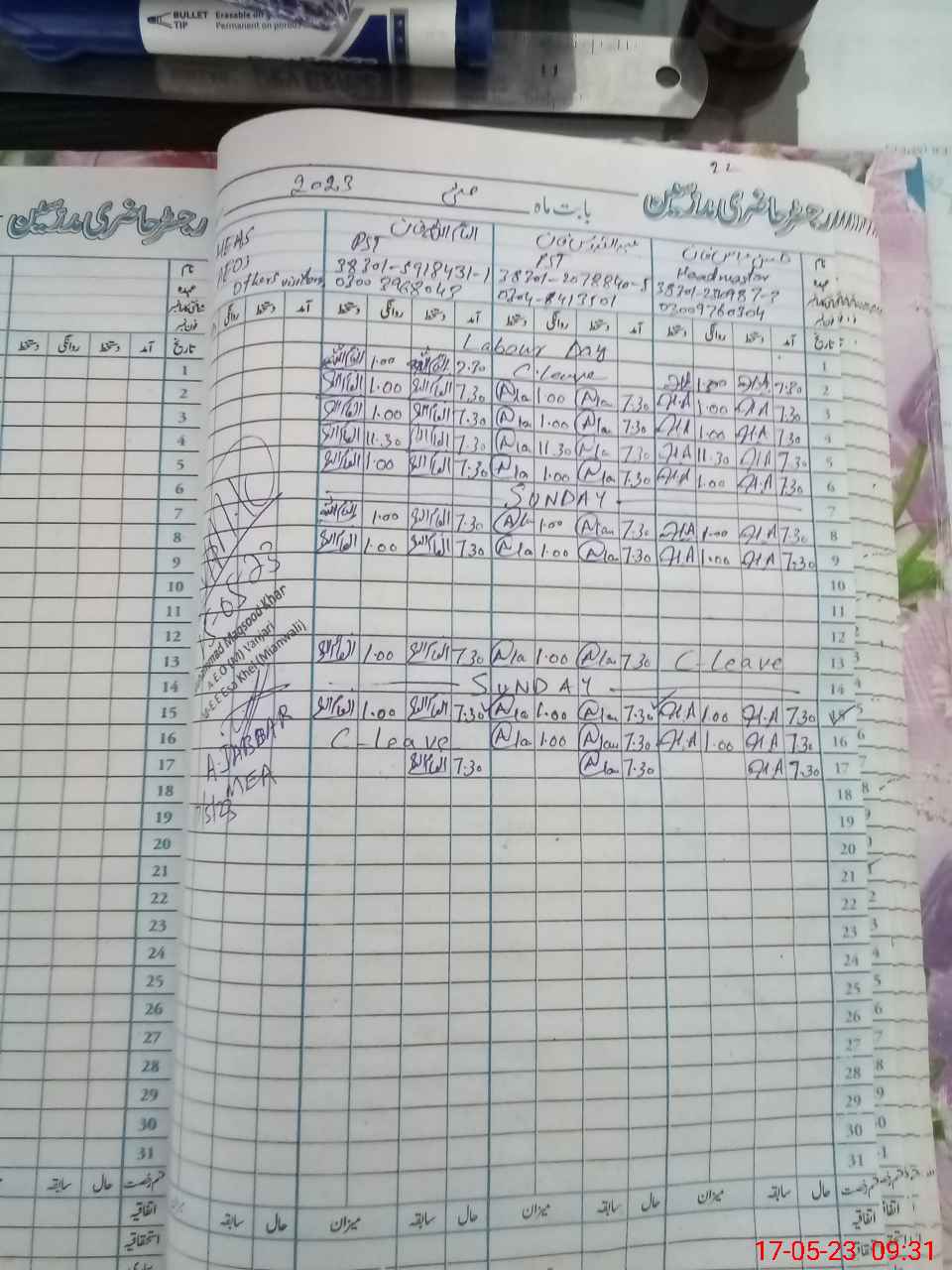 | CNIC | Full Name | Designation | R/C | Absence During Last Calender Month |