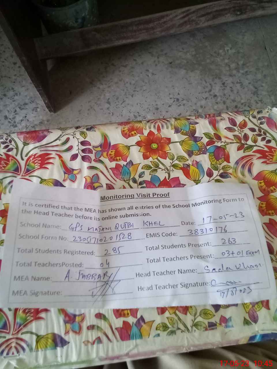 | Attendance Register | Head Teacher | MEA with School | Visit Proof |