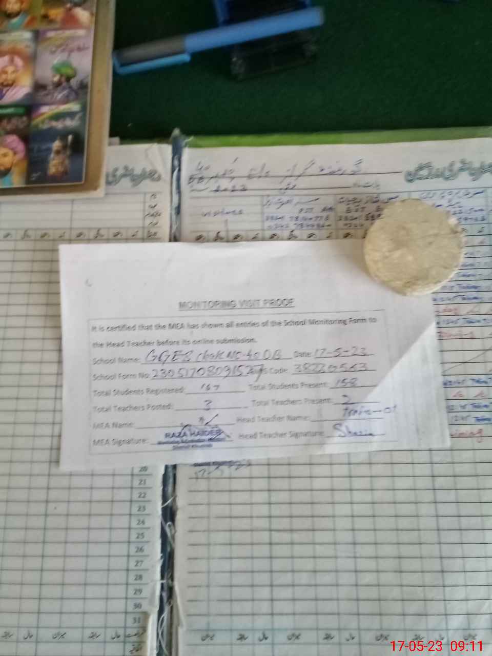 | Attendance Register | Head Teacher | MEA with School | Visit Proof |