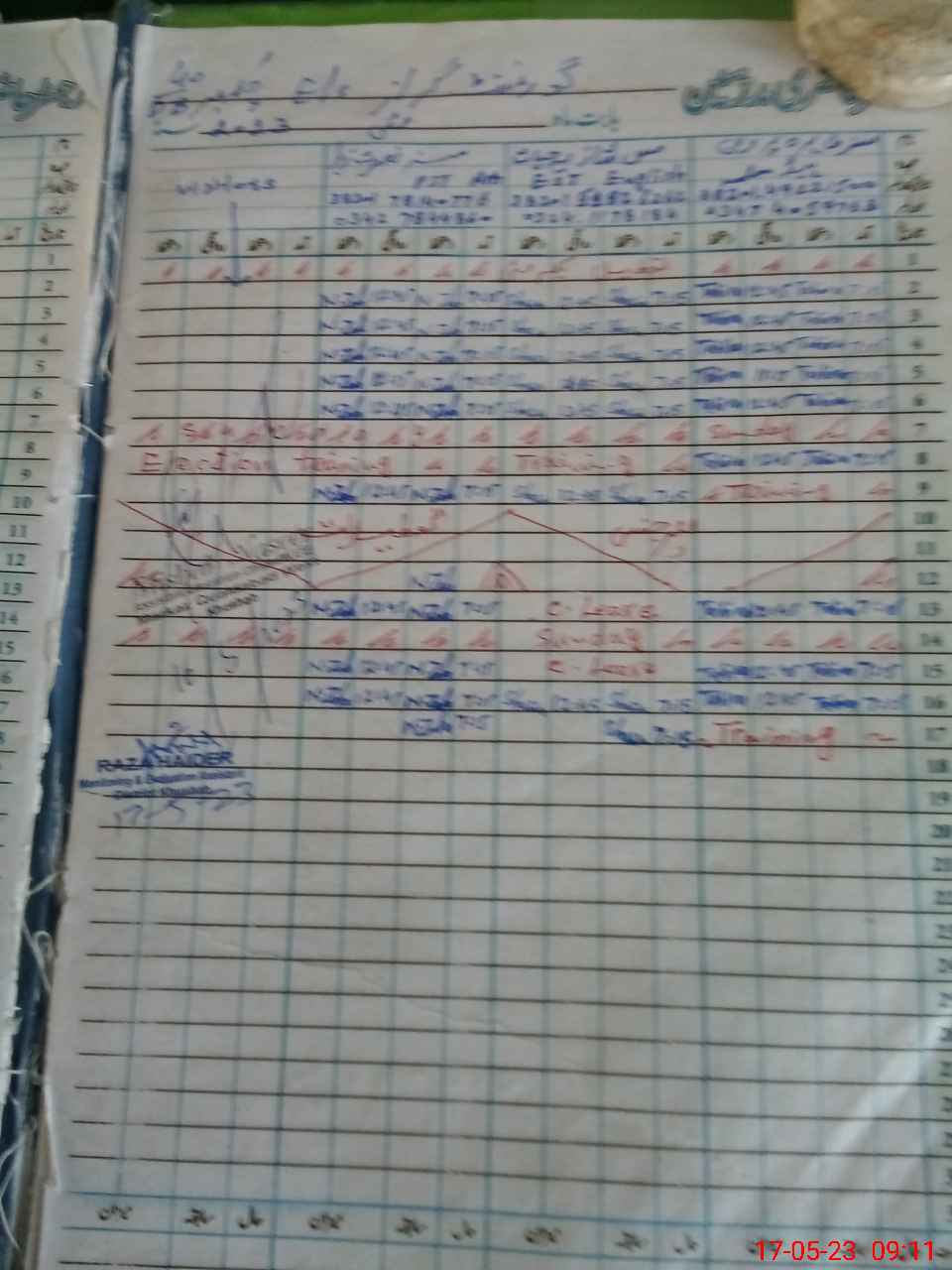 | CNIC | Full Name | Designation | R/C | Absence During Last Calender Month |