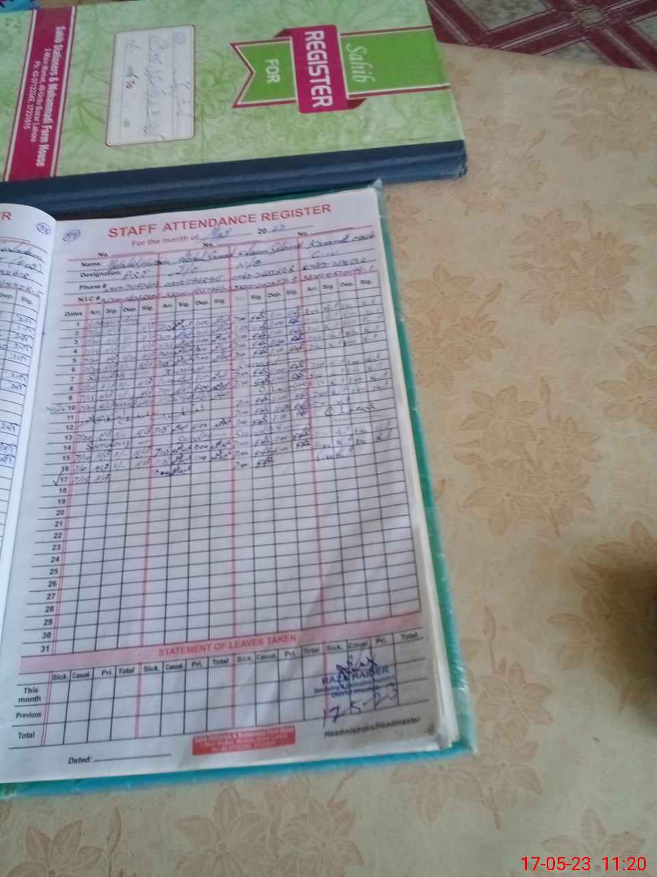 | CNIC | Full Name | Designation | R/C | Absence During Last Calender Month |