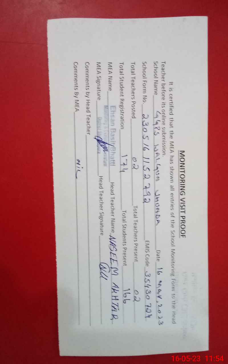 | Certified that this School was Inspected by the Undersigned MEA/DMO Today and the Information Stated Above is as Per Record. | |||||