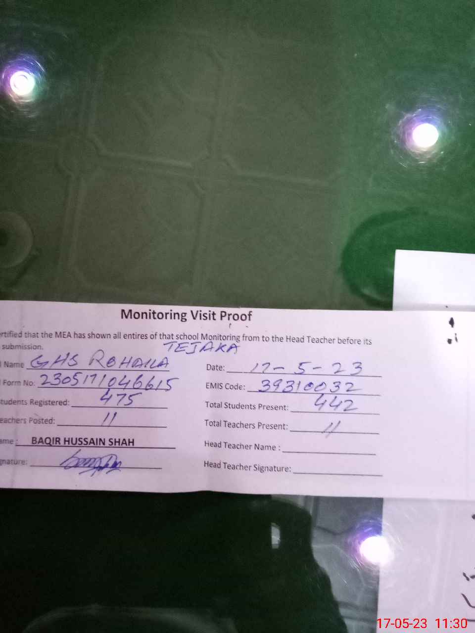 | EMIS Code: 39310032 | Name of School: GHS ROHELA TAJEKA | |||