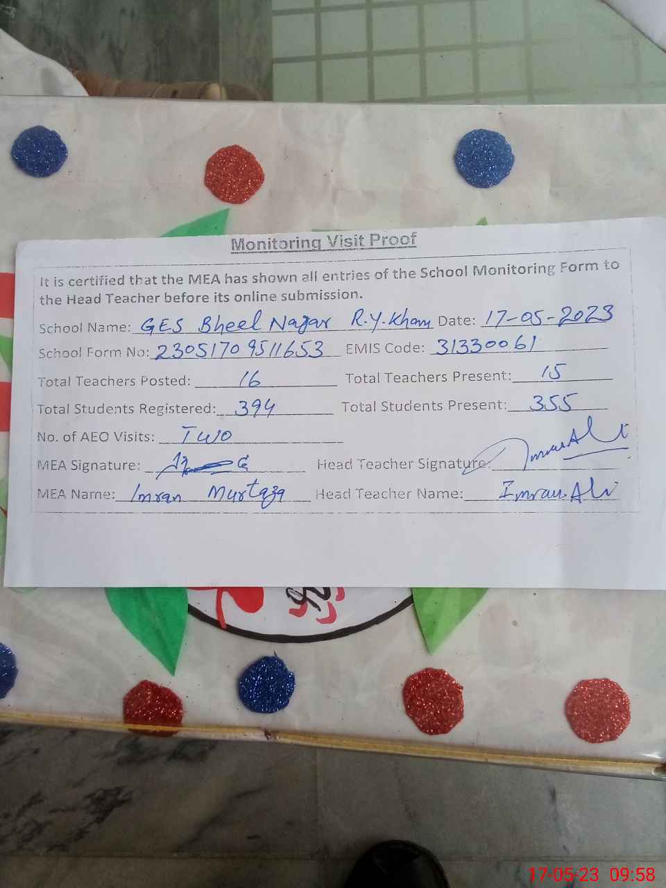 | EMIS Code: 31330061 | Name of School: GES BHEEL NAGAR RAHIM YAR KHAN | |||
