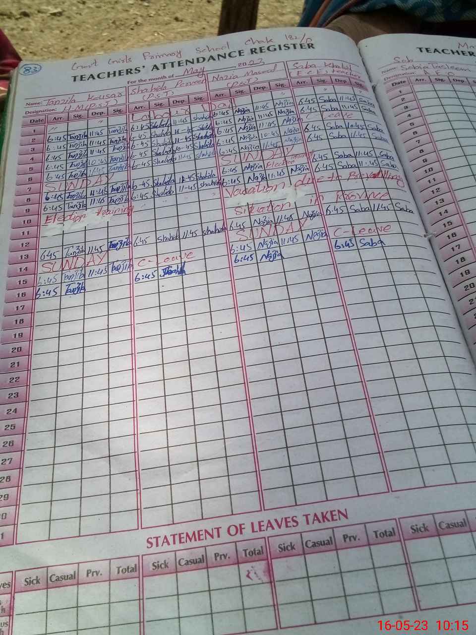 | Leave | Duty | Absent | Maternity | Medical | Ex- Pak |