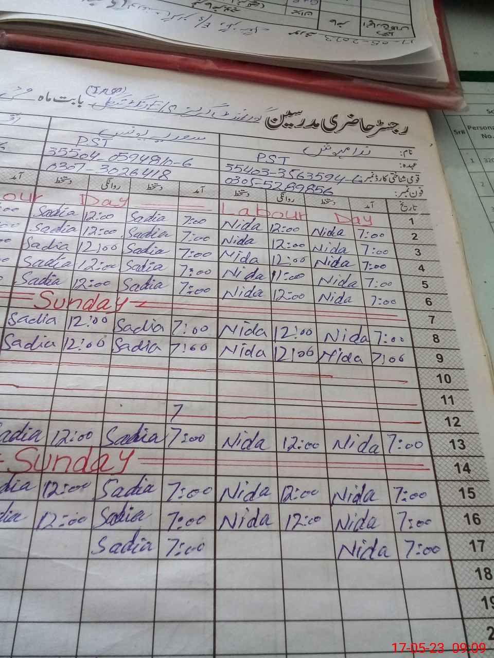| CNIC | Full Name | Designation | R/C | Absence During Last Calender Month |