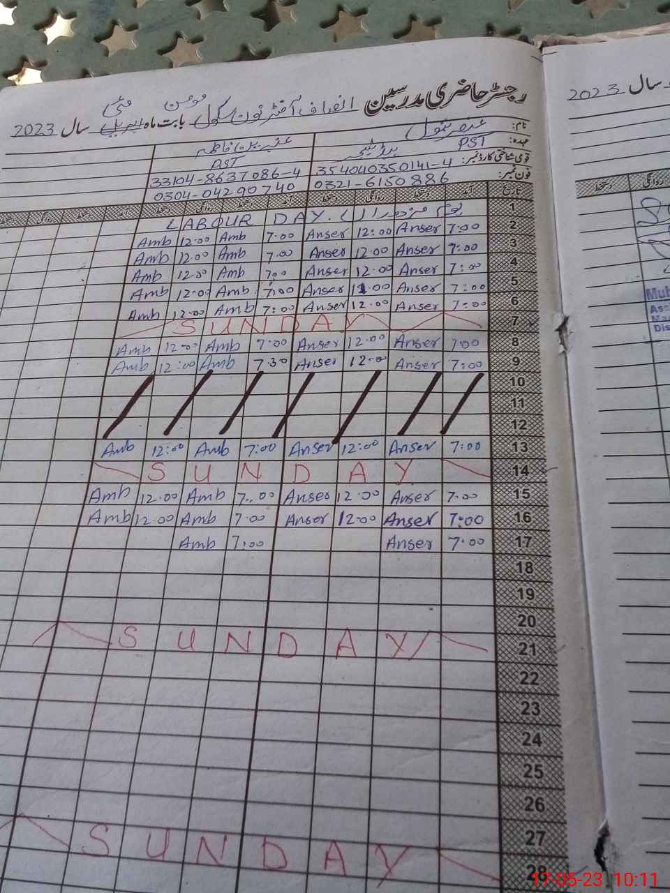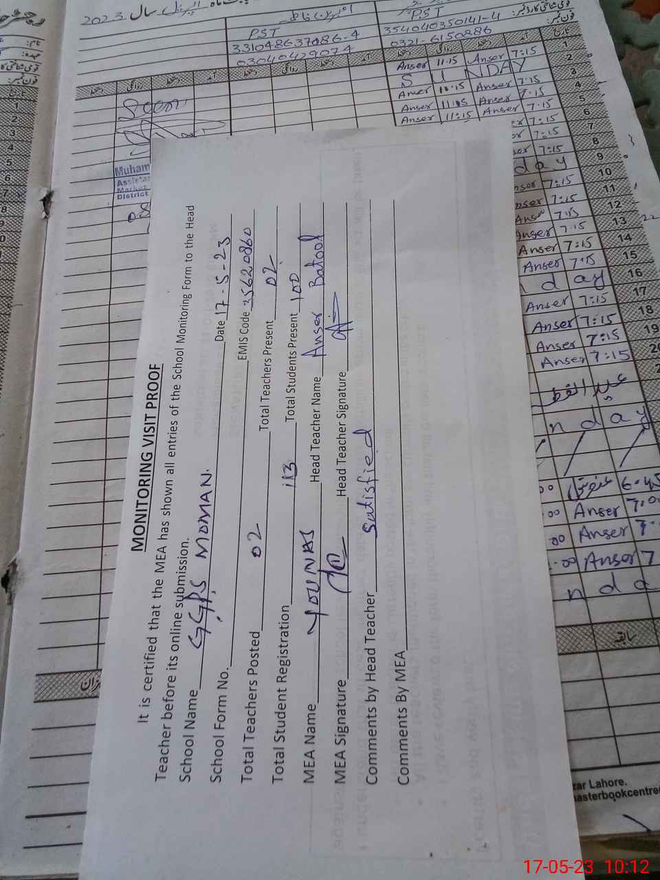 | Name: AN**** BA**** Designation: (School Headmaster's/Headmistress's) PST Phone/Cell Number: 03**** |
