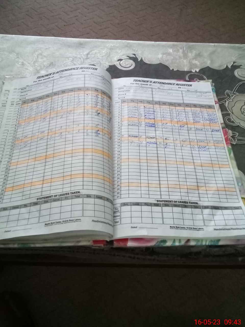 | CNIC | Full Name | Designation | R/C | Absence During Last Calender Month |