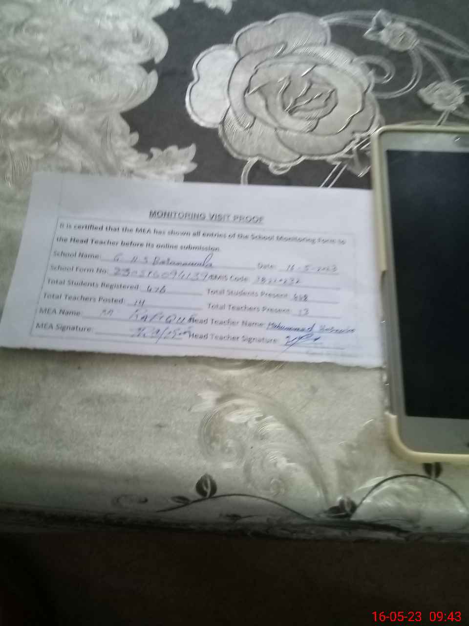 | Attendance Register | Head Teacher | MEA with School | Visit Proof |