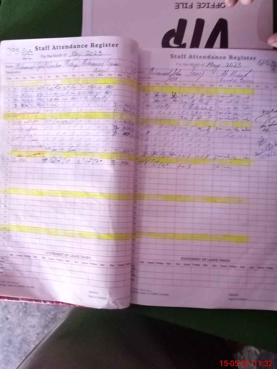 | CNIC | Full Name | Designation | R/C | Absence During Last Calender Month |