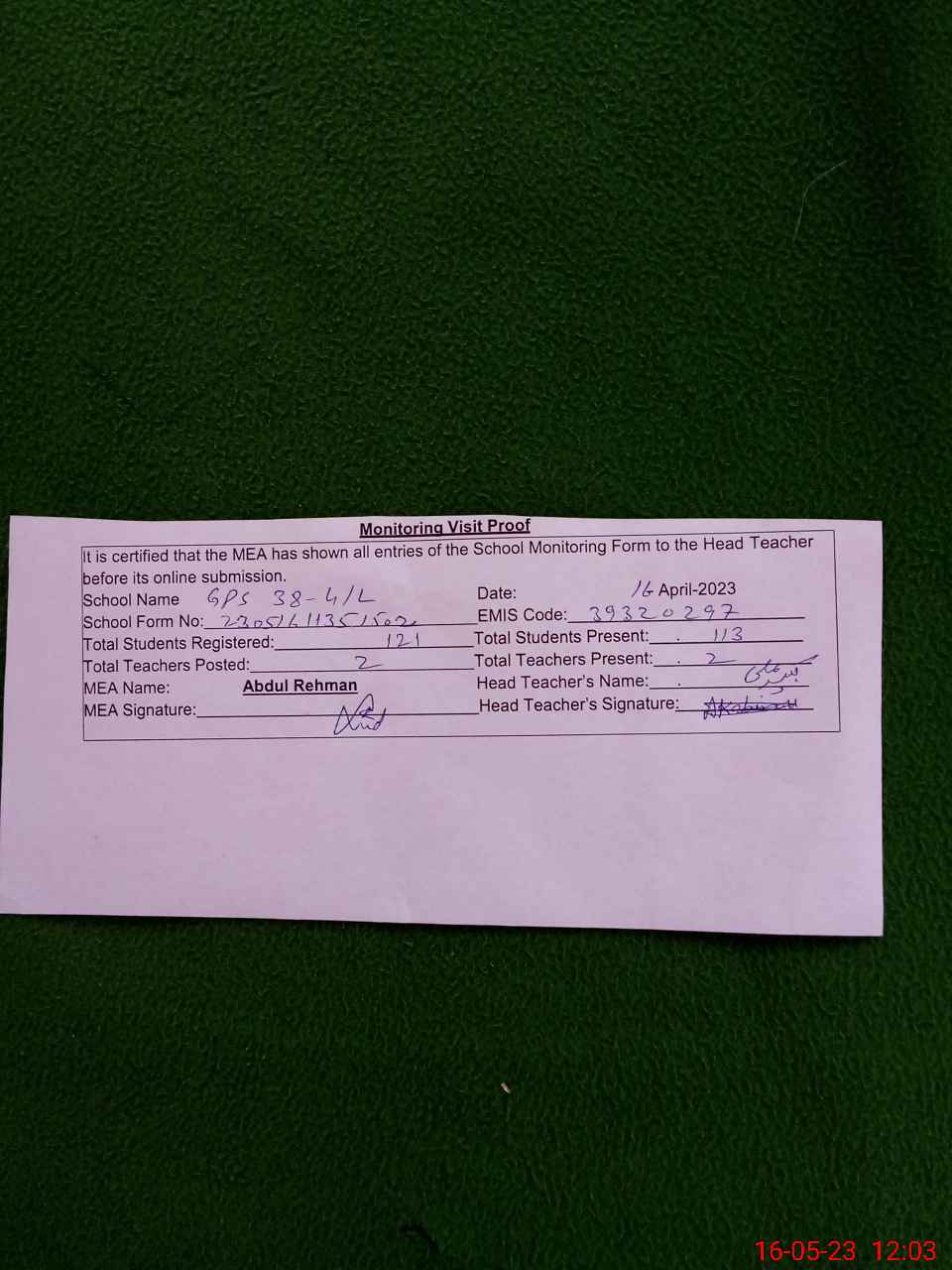 | EMIS Code: 39320297 | Name of School: GPS CHAK 38/4-L | |||