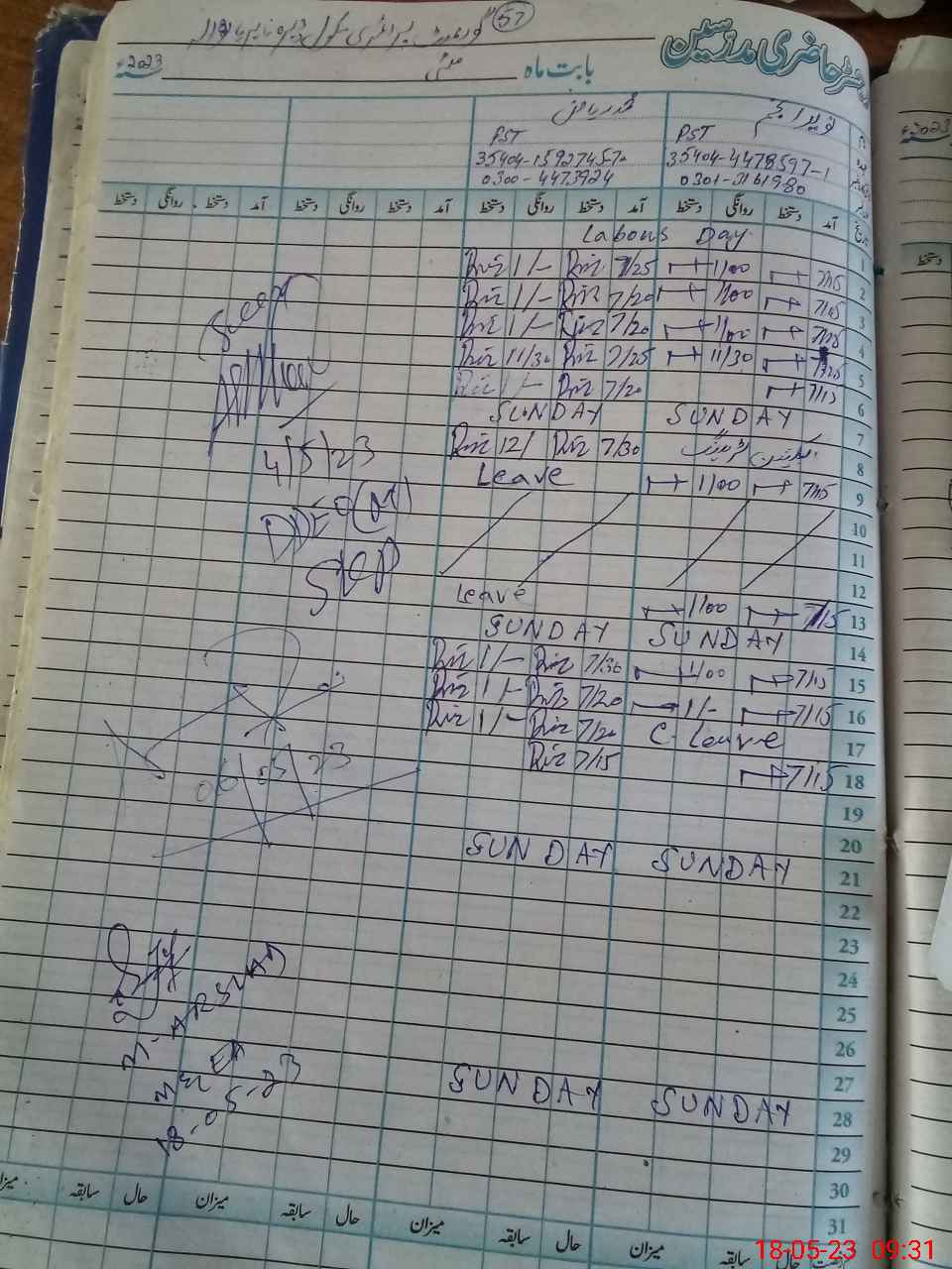 | CNIC | Full Name | Designation | R/C | Absence During Last Calender Month |