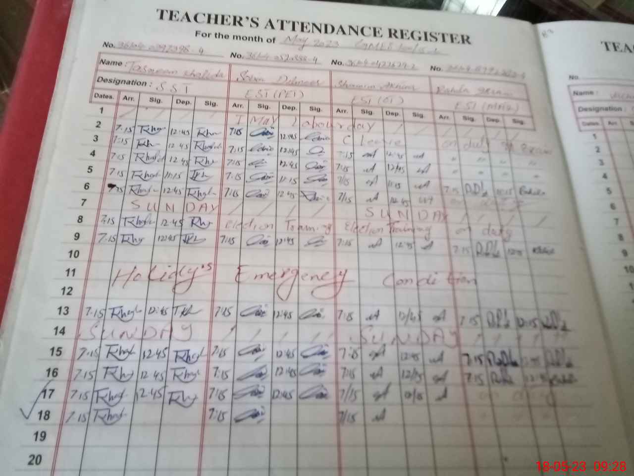 | 36**** | Ha**** Ra**** Ik**** | Regular | 0 | 3 | 0 | 0 | 0 | 0 | 0 | 0 | 0 | Exam Duty | |