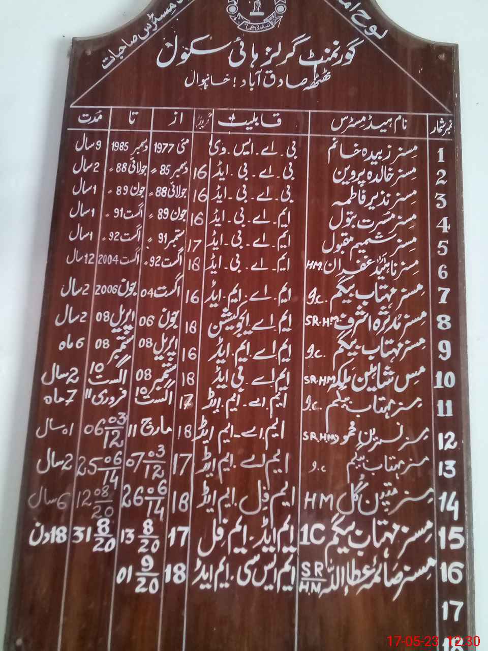 | EMIS Code: 36440059 | Name of School: GGHS THATHA SADIQ ABAD JAHANIAN | |||
