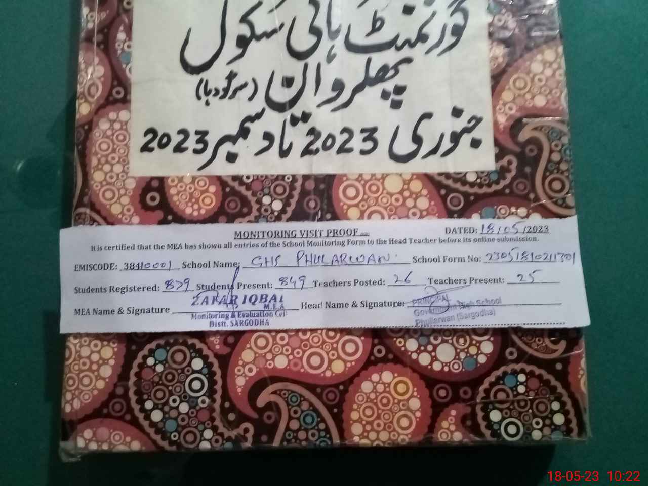 | EMIS Code: 38410001 | Name of School: GHS PHULARWAN | |||